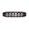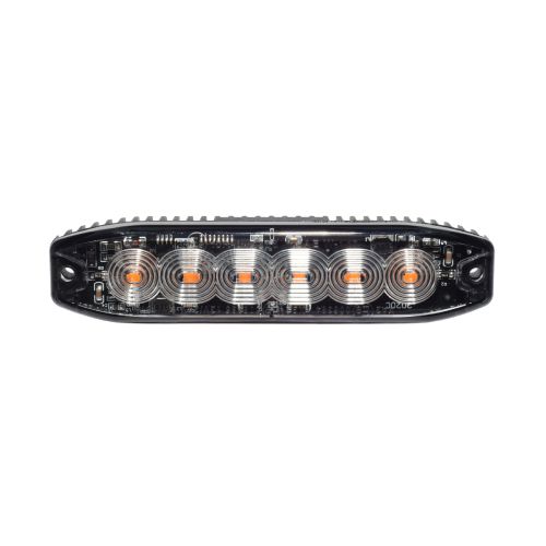 6 LED brīdinājuma gaisma ar pašlīmējošo pamatni (12-24V), 18W. IP67 aizsardzības klase un REG65 spožuma klase. Katra LED diode 3W. 20 mirgošanas režīmi. Ar atmiņas funkciju. Izmēri: garums 131mm, platums 30mm, attālums starp skrūvēm 120mm. Stiprināšana ar 2 skrūvēm.