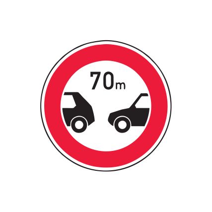 Aizlieguma zīme Nr.318/Minimālās distances ierobežojums. Izmēri: 700x700mm. 1. atstarošanas klase.
