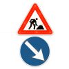 Aktīvā LED ceļa zīme Nr.118 “Uz ceļa strādā”. Izmērs: 700x700mm. Aprīkota ar LED diodēm. Komplektā ar – Aktīvā LED ceļa zīme Nr.410/411 “Šķērsli apbraukt pa labo/kreiso pusi [Bulta]”. Izmērs: d=600mm. Aprīkota ar LED diodēm.