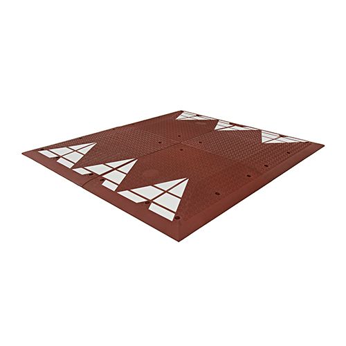 Ātruma ierobežošanas sala KVARTET. Izgatavota no gumijas. Krāsa: sarkana. Kopējais izmērs: 1800x2000x60mm. Sastāv no 4 atsevišķām daļām – 2 vidējiem elementiem (garums 1500mm, platums 900mm, augstums 65mm), 2 stūru elementiem (garums 500mm, platums 900mm, augstums 65mm). Korķi skrūvju nosegšanai iegādājami atsevišķi (neietilpst komplektā). Svars: 192kg.