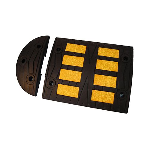 Ātruma slāpētāja (guļošā policista) nobeiguma elements, gumijas 400x180x50mm, melns. Montāžai nepieciešamas 3 skrūves (Cenā nav iekļautas). Svars: 2kg