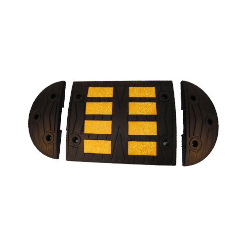 Ātruma slāpētāja (guļošā policista) vidējais elements, gumijas. Platums- 400mm, garums- 480mm, augstums-50mm (melns ar atstarojošām uzlīmēm). Montāžai nepieciešamas 4 skrūves (cenā nav iekļautas). Svars: 8,8kg.
