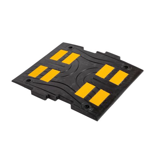 Ātruma slāpētāja (guļošā policista) vidējais elements, gumijas Platums-600mm, garums-500mm, augstums- 50mm (melns ar dzeltenām atstarojošām joslām)Montāžai nepieciešamas 4 skrūves (cenā nav iekļautas!). Svars:12kg.