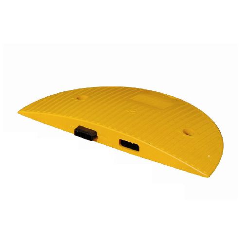 Poliuretāna (PPC) ātruma slāpētāja (guļošā policista) nobeiguma elements. Piemērots zonām ar braukšanas ātruma ierobežojumu 40km/h. Krāsa: dzeltena. Izmēri: platums 500mm, garums 250mm, augstums 45mm. Montāžai nepieciešamas 2 skrūves (komplektā nav iekļautas). Svars: 2.9kg.