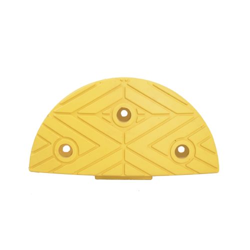 Ātruma slāpētāja H50 (guļošā policista) nobeiguma elements, gumijas. Izmēri: garums 200mm, platums 400mm, augstums 50mm. Krāsa: dzeltena. Montāžai nepieciešamas 3 skrūves (komplektā nav iekļautas!). Svars: 1,7kg.