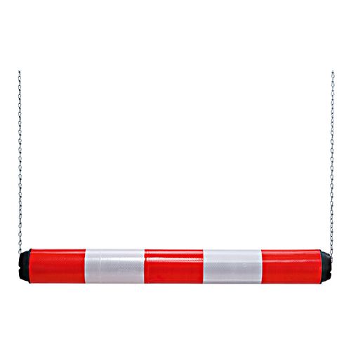 Plastmasas augstuma ierobežotājs, sarkans ar baltām atstarojošām joslām. Izmēri: garums 950mm, diametrs 100mm. Komplektā 2m garas ķēdes (2gb.). Melni sānu stiprinājumi.
