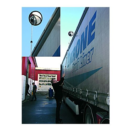 Auto apskates spogulis. Diametrs: 35cm, teleskopisks 3 reizes pagarināms alumīnija kāts (40-110cm). Aprīkots ar riteņiem, bez apgaismojuma. Izgatavots no triecienizturīga akrila. Spoguļa malas rāmī fiksētas ar silikonu (neļauj iekļūt ūdenim). Spoguli var izmantot gan iekštelpās, gan ārā. Svars: 2kg. TÜV sertifikāts.