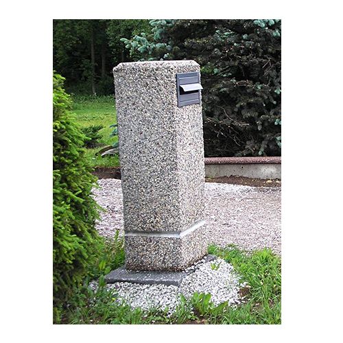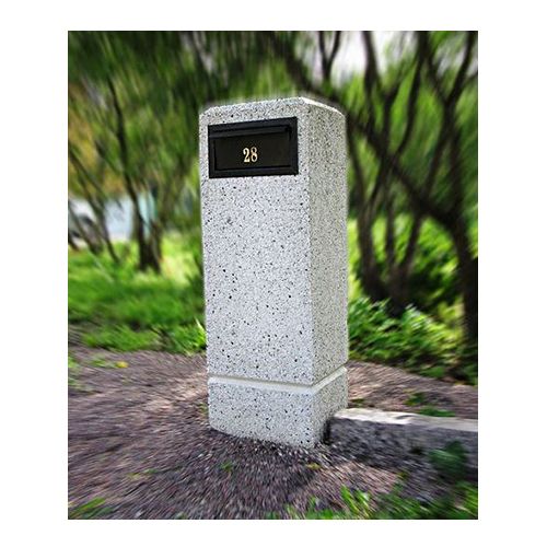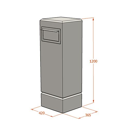 Betona pastkaste. Izmēri: augstums 1200mm, platums 420mm, dziļums 360mm. Aizmugurē pastkaste ir slēdzama ar slēdzamām durvīm. Pastkastes iekšējā daļa no metāla. Svars: 258kg.