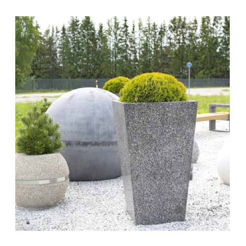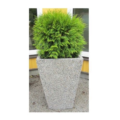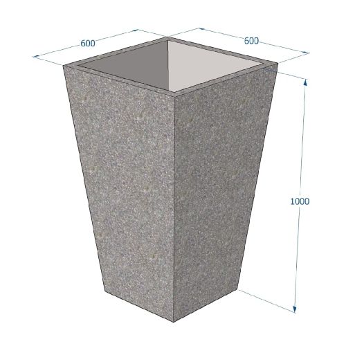 Betona puķu pods (konusveida). Izmēri: platums 600mm, garums 600mm, augstums 1000mm. Svars: 220kg. Iespējamie betona toņi: L101, L102, L103, L104, L105, L106, L107, L201, L202, L203, L303, L304, L405, L406, L407