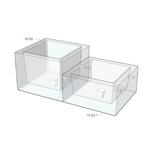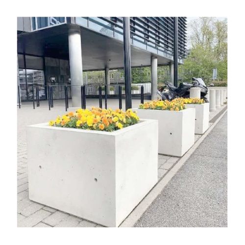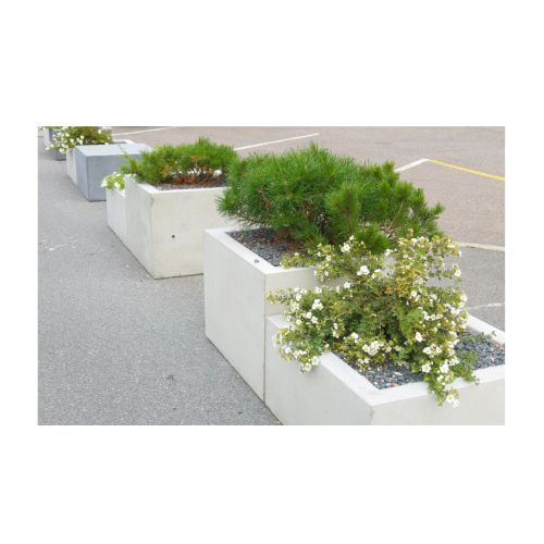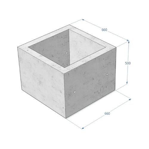 Betona puķu pods (kvadrātveida). Izmēri: garums 660mm, platums 660mm, augstums 500mm. Svars: 280kg. Iespējamie betona toņi: S101, S103, S104, S205.