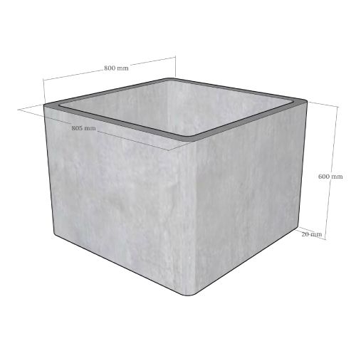 Betona puķu pods (kvadrātveida), 805x800x600mm