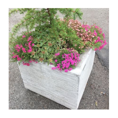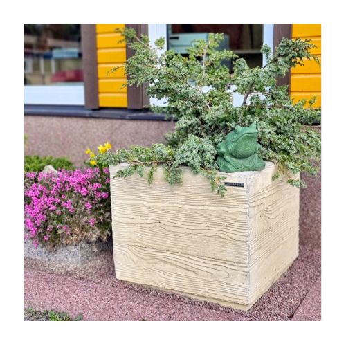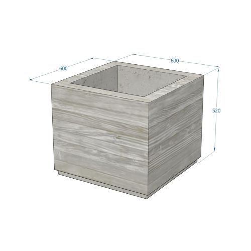 Betona puķu pods (kvadrātveida). Izmēri: garums 600mm, platums 600mm, augstums 520mm. Svars: 250kg. Iespējamie betona toņi: S101, S102, S103, S104, S201, S202, S203, S204, S205.