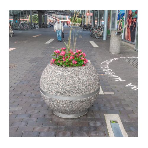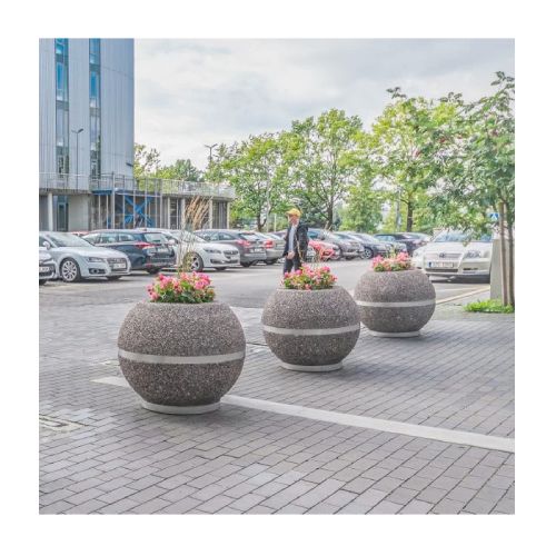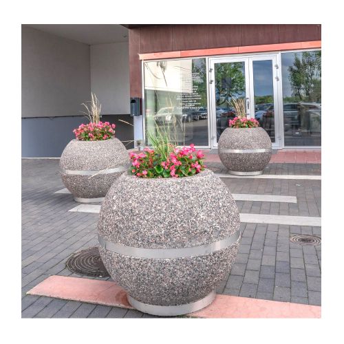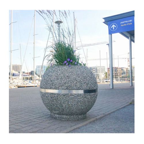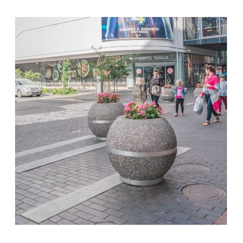 Betona puķu pods (lodveida) ar nerūsējošā tērauda pamatni un joslu, d=900mm (h=700mm)