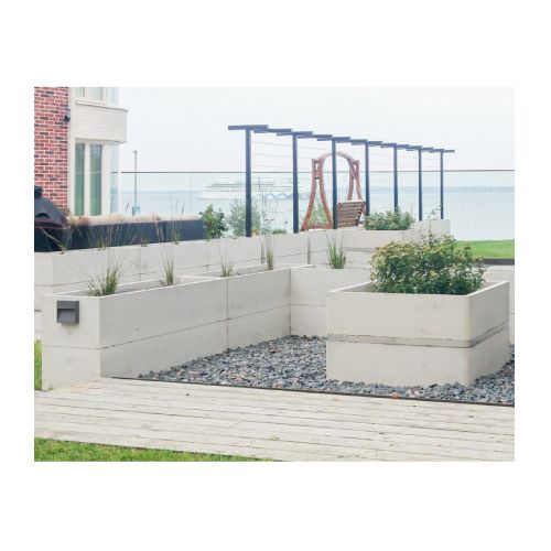 Betona puķu pods (taisnstūrveida). Izmēri: garums 1300mm, platums 400mm, augstums 590mm. Svars: 225kg. Iespējamie betona toņi: P101, P103, P104, P106, S101, S103, S104, S205.
