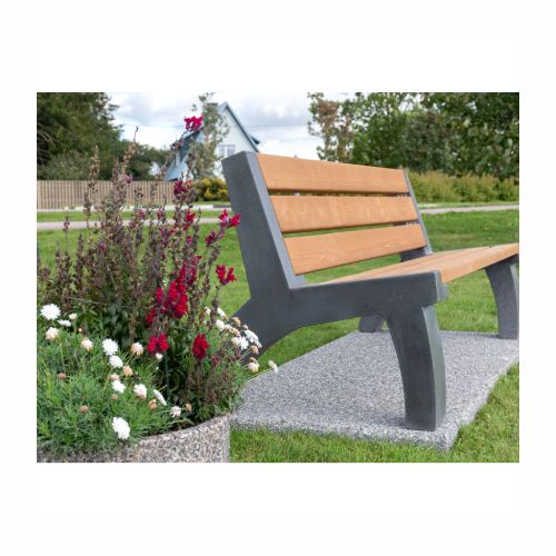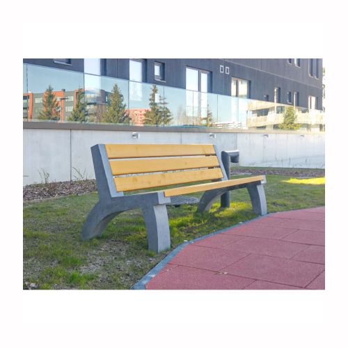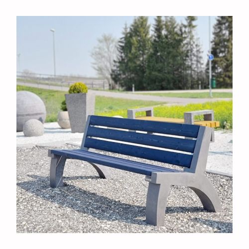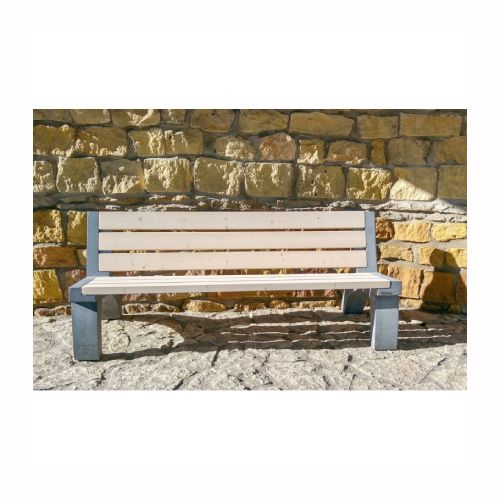 Betona soliņš ar atzveltni un koka dēlīšiem. Izmēri: garums 2000mm, dziļums 780mm, augstums 800mm. Svars: 160kg. Apdares veids: gluds betons. Iespējamie betona toņi: S101, S102, S103, S104, S201, S202, S203, S204, S205. Iespējamie koka dēlīšu toņi: 5050, 5053, 5055, 5059, 5061, 5066, 5068, 5071, 5072, 5075, 5076, 5077, 5085, 5086, 5089.