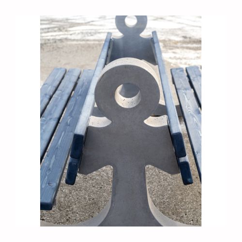 Betona soliņš enkura formas veidolā. Izmēri: garums 1995mm, platums 1500mm, augstums 1040mm. Svars: 280kg. Apdares metode: gluds betons. Iespējamie betona toņi: S101, S102, S103, S104, S201, S202, S203, S204, S205. Iespējamie koka dēlīšu toņi: 5050, 5053, 5055, 5059, 5061, 5066, 5068, 5071, 5072, 5075, 5076, 5077, 5085, 5086, 5089.