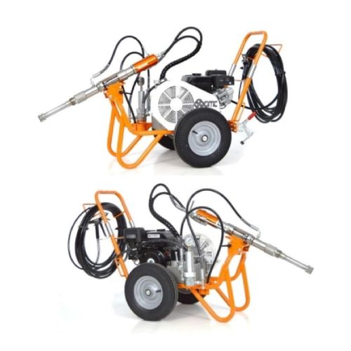 Bezgaisa virzuļsūknis P20-CB/P20-CE krāsošanai, hidroizolācijai, galdniecībai, jūras, lielajām tvertnēm, ceļa zīmēm. Pieejams ar benzīna dzinēju. Lietošana: akrils, sintētiskie sveķi, elpojošas krāsas, mazgājamas krāsas, mazgāšanas līdzekļi, gruntskrāsas, pildvielas, ūdens vai šķīdinātāju bāzes ceļu krāsas. Izsmidzināmie produkti: akrila krāsas, sintētiskās krāsas, sveķu lakas, 2-komponentu materiāli, emulsijas, lateksa krāsas, gruntēšanas lakas un gruntskrāsas, špakteles, ceļu marķēšanas krāsas uz ūdens bāzes vai šķīdinātāja bāzes. Fotoattēls neatspoguļo standarta versiju.