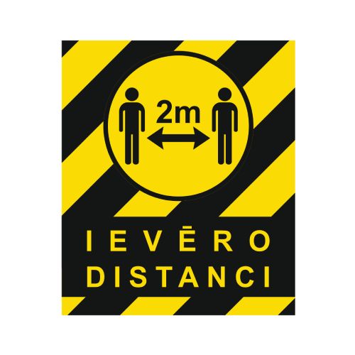 Brīdinājuma uzlīme “Ievēro distanci 2m”, 34x40cm (1.atst. klase)