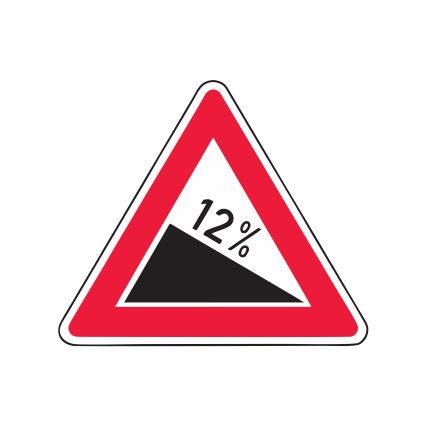 Brīdinājuma zīme Nr.110/Stāvs lejupceļš. Izmēri: 700x700mm. 2. atstarošanas klase.