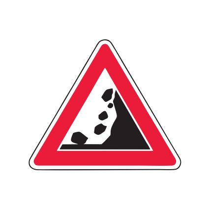 Brīdinājuma zīme Nr.117/Akmeņu nogruvumi. Izmēri: 700x700mm. 2. atstarošanas klase.