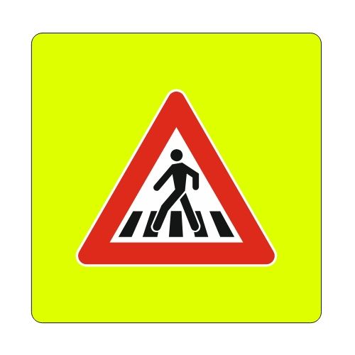 Brīdinājuma zīme Nr.120F/Gājēju pāreja, 940x940mm ar fluorescējošu rāmi, 3. atst. klase