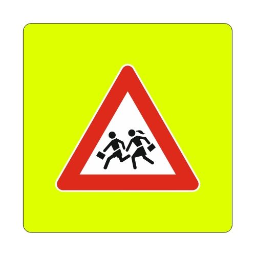 Brīdinājuma zīme Nr.121F/Bērni. Ar fluorescējošu rāmi apkārt. Izmēri: 1200x1200mm. 3. atstarošanas klase.