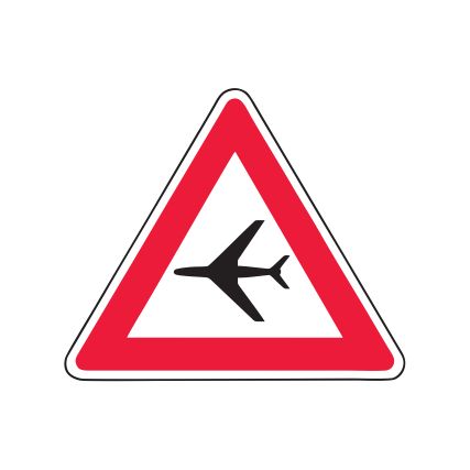 Brīdinājuma zīme Nr.129/Zemu lidojošas lidmašīnas. Izmēri: 700x700mm. 2. atstarošanas klase.