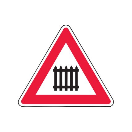 Brīdinājuma zīme Nr.132/Dzelzceļa pārbrauktuve ar barjeru. Izmēri: 700x700mm. 1. atstarošanas klase.