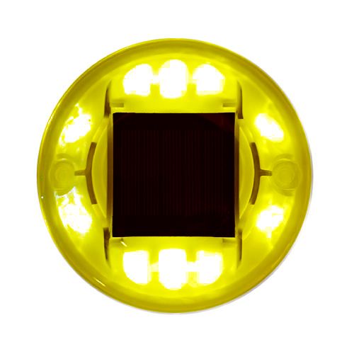 Ceļa atstarotājs, kas aprīkots ar LED diodēm un saules baterijām. Krāsa: dzeltena. Izmēri: diametrs 122mm, augstums 25mm. Saules panelis: 2.5V/120mAh Ni-Mh baterijai vai 3.2V/500mAh Litija baterijai. Akumulators: 1.2V/600mAh, 1.2V/1300mAh, 1.2V/1500mAh BI-Mh baterijai vai 3.2V/500mAh Litija baterijai. Darba režīmi: mirgojošs (120 reizes/minūtē) vai pastāvīgs. Aprīkots ar 6gab. ļoti gaišām LED diodēm (d=5mm). Redzes diapazons: vairāk kā 800m. Gaismas intensitāte: 400-500lx. Darba temperatūra: -20 līdz ~+60 grādi pēc Celsija. Ūdensizturības klase: IP68. Darbības ilgums: vairāk kā 200h mirgojošajam režīmam/50-72h pastāvīgajam režīmam atkarībā no baterijas lieluma. Darbības ilgums: 3-5 gadi NI-mAh baterijai; 5-8 gadi Litija baterijai. Saspiešanas pretestība: >10T. Materiāls: polikarbonāts (PC) un alumīnijs. Nerūsējošā tērauda skrūves. Gumijas blīve. Alumīnija korpuss. Stiprināms asfaltā vai betonā ar speciālu līmi.