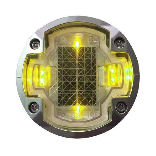 Ceļa atstarotājs, kas aprīkots ar LED diodēm un saules baterijām. Krāsa: dzeltena. Izmēri: diametrs 123mm, augstums 45mm. Saules panelis: 5V/100MAh. Akumulators: 3.2V/1000mAh (litija baterija). Darba režīmi: mirgojošs (200 reizes/minūtē) vai pastāvīgs. Aprīkota ar 6gab. ļoti gaišām LED diodēm. Redzes diapazons: vairāk kā 1000m. Gaismas intensitāte: 400-500lx. Darba temperatūra: -20 līdz +80 grādi pēc Celsija. Ūdensizturības klase: IP68. Darbības ilgums: vairāk kā 200h mirgojošajam režīmam/100h pastāvīgajam režīmam. Darbības ilgums: >5-8 gadi litija baterijai. Saspiešanas pretestība: >80T. Materiāls: polikarbonāts (PC) un alumīnijs. Nerūsējošā tērauda skrūves. Gumijas blīve. Alumīnija korpuss. Stiprināms asfaltā vai betonā ar speciālu līmi. Iztur 80t slodzi.