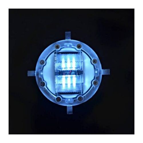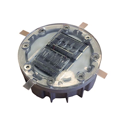 Ceļa atstarotājs, kas aprīkots ar LED diodēm un saules baterijām. Izmēri: diametrs 126mm, augstums 56,5mm. Divu virzienu atstarotāji – viens sarkans, otrs sarkans. Alumīnija un plastikāta korpuss. Stiprināšana asfaltā ar speciālu līmi. Svars: 0,98kg.