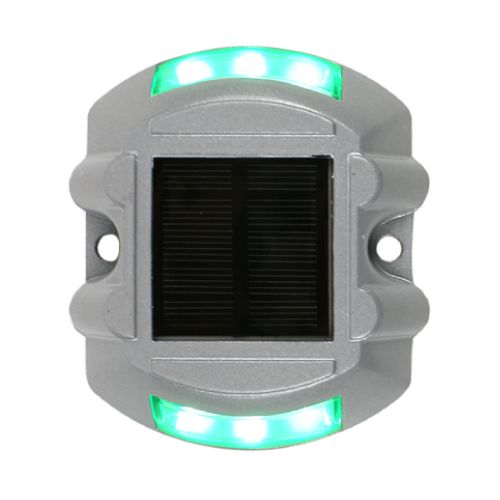 Ceļa atstarotājs, kas aprīkots ar LED diodēm un saules baterijām. Krāsa: zaļa. Izmēri: garums 108mm, platums 97mm, augstums 25mm. Saules panelis: 2.5V/120mAh. Akumulators: 1.2V/600mAh (NI-Mh baterija). Darba režīmi: mirgojošs vai pastāvīgs. Aprīkota ar 6gab. ļoti gaišām LED diodēm (d=5mm). Redzes diapazons: vairāk kā 800m. Gaismas intensitāte: 400-500lx. Darba temperatūra: -20 līdz +80 grādi pēc Celsija. Ūdensizturības klase: IP68. Darbības ilgums: vairāk kā 200h mirgojošajam režīmam/72h pastāvīgajam režīmam. Darbības ilgums: 3-5 gadi. Saspiešanas pretestība: >20T. Materiāls: polikarbonāts (PC) un alumīnijs. Stiprināms asfaltā vai betonā ar 2 skrūvēm vai pielīmējams ar speciālu līmi.
