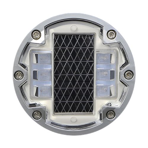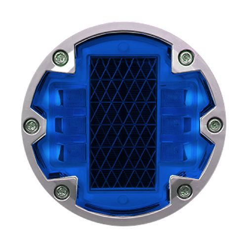 Ceļa atstarotājs, kas aprīkots ar LED diodēm un saules baterijām. Krāsa: zila. Izmēri: diametrs 143mm, augstums 50mm. Saules panelis: 5V/140mAh. Akumulators: 3.2V/1500mAh (litija baterija). Darba režīmi: mirgojošs (120 reizes/minūtē) vai pastāvīgs. Aprīkota ar 6gab. ļoti gaišām LED diodēm. Redzes diapazons: vairāk kā 1000m. Gaismas intensitāte: 400-500lx. Darba temperatūra: -20 līdz +80 grādi pēc Celsija. Ūdensizturības klase: IP68. Darbības ilgums: vairāk kā 220h mirgojošajam režīmam/100h pastāvīgajam režīmam. Darbības ilgums: >5-8 gadi litija baterijai. Saspiešanas pretestība: >100T. Materiāls: polikarbonāts (PC) un alumīnijs. Nerūsējošā tērauda skrūves. Gumijas blīve. Alumīnija korpuss. Stiprināms asfaltā vai betonā ar speciālu līmi. Iztur 80t slodzi.