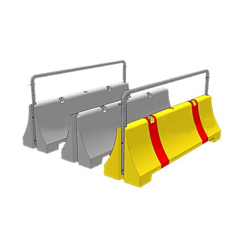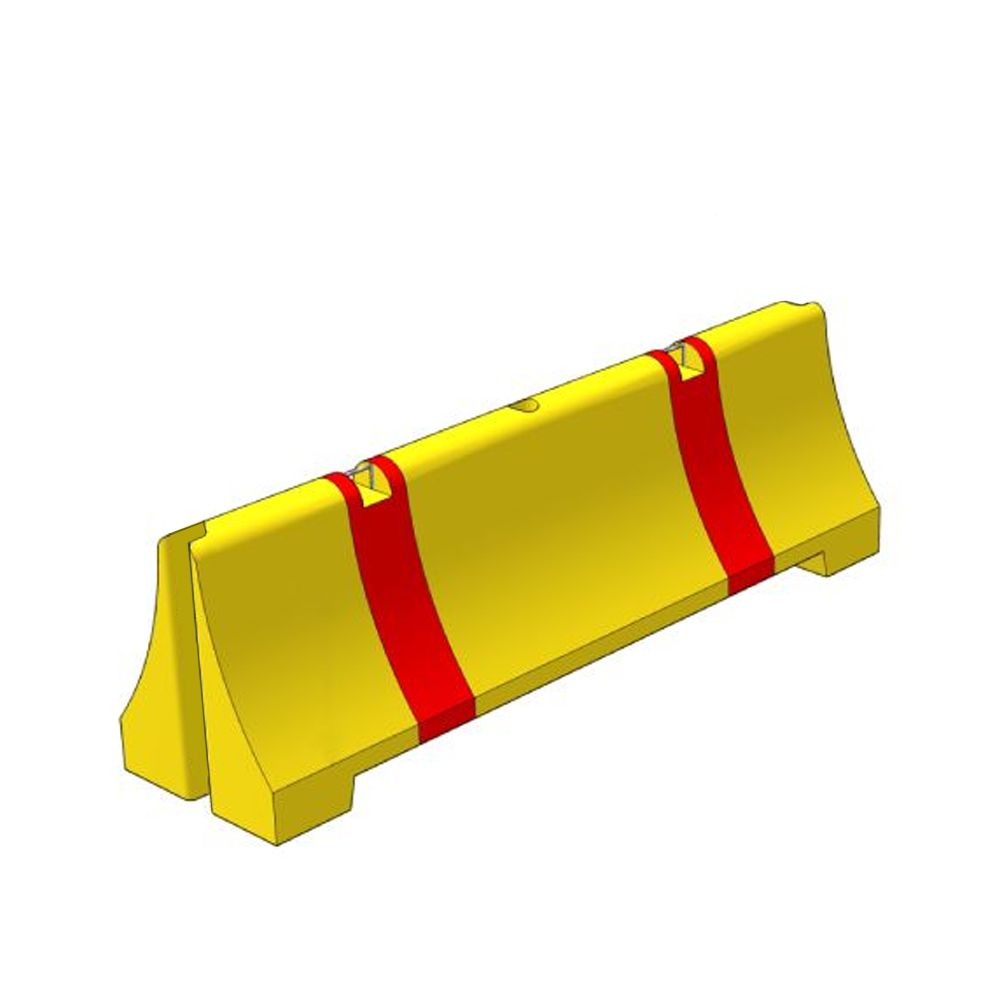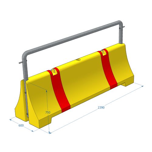 Ceļa norobežošanas barjera. Izmēri: garums 2390mm, platums 600mm, augstums 750mm. Krāsa: dzeltena ar sarkanām svītrām. Piemērota ceļa joslu norobežošanai. Svars: 1270kg.