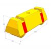 Ceļa norobežošanas barjera. Izmēri: garums 1100mm, platums 400mm, augstums 400mm. Krāsa: dzeltena ar sarkanām svītrām. Piemērota ceļa joslu norobežošanai. Svars: 270kg.