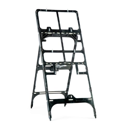 Ceļa zīmes pagaidu statīvs EnduraFrame™ 1500. Materiāls: plastmasa ar kompozītmateriālu. Krāsa: melna (pēc pasūtījuma var kādā no RAL krāsām). Var uzlikt finiera, kompozīta un metāla zīmes. Aprīkots ar 8 stiprināšanas kronšteiniem (300mm atstarpju vietas). Izturīgs pret vēju un plaisāšanu. Izmēri: augstums 1495mm, platums 600mm, biezums 62mm. Kompakts dizains, viegli salokāms (neaizņem daudz vietu). Svars: 5kg. Uz paletes: 50gab.
