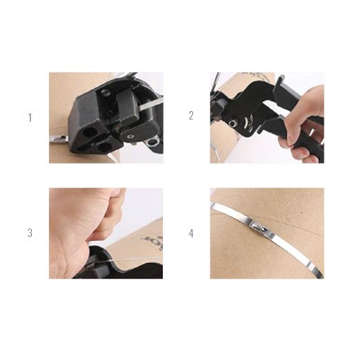 Ceļa zīmju stīpotājs/griezējs nerūsējošā tērauda lentēm ar lodveida slēdzenes tipu. Manuāli lietojams. Piemērots cela zīmju uzstādīšanai, kabeļu, ventilācijas cauruļu, mastu u.c. elementu nostiprināšanai (stīpošanai). Piemērots tēraudu lentu spriegošanai un griešanai. Izturīgs pret koroziju un oksidāciju. Ideāli piemērots lodveida tipa lentām, kas izgatavotas no dažādu tipu nerūsējošā tērauda. Ar rokturi var regulēt spriegošanas stiprumu, iebūvētais mehānisms nogriež lentas nevajadzīgo posmu. Viegla un ātra lietošana. Maksimālais stīpošanas lentas platums 7.9mm, minimālais stīpošanas lentas platums 4.6mm, maksimālais stīpošanas lentas biezums 0.4mm. Lentas tips: ar vai bez pārklājuma.