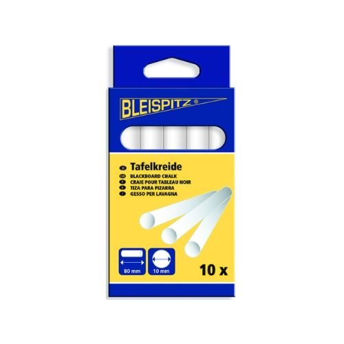 Cietais tāfeles krīts. Krāsa: balta. Krīta izmērs: diametrs 10mm, garums 80mm, apaļas formas. Iepakojumā: 10gab. Cena par iepakojumu!