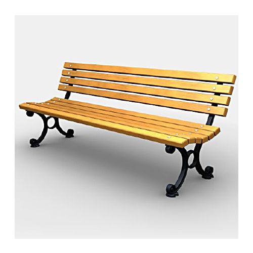 Čuguna soliņš ar koka dēlīšiem ar atzveltni (soliņš stiprināms ar skrūvēm). Garums: 180cm, sēdekļa dziļums 40cm, kopējais augstums 80cm. Priedes koka dēļi, melni krāsots čuguna karkass. Dēlīši iespējami tīkkoka (gaiša koka) vai rožkoka – palisandra (tumša koka) toņos.