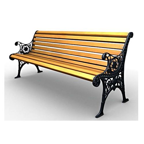 Čuguna soliņš ar koka dēlīšiem, atzveltni un elkoņa balstiem (soliņš brīvi stāvošs). Garums: 150cm, sēdekļa dziļums 38cm, sēdekļa augstums 42cm, kopējais augstums 75cm. Priedes koka dēļi, melni krāsots čuguna karkass. Dēlīši iespējami tīkkoka (gaiša koka) vai rožkoka – palisandra (tumša koka) toņos.