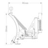 Diagonāla sniega lāpsta. Lāpstas platums 1800mm, darba platums 1630-1840mm, lāpstas augstums 550mm, lāpstas dziļums 592mm. Gumijas naža izmērs: 150x30mm. Sniega lāpstas ribu un karkasa metāla materiāla biezums +/-4mm. Saliekta lāpstas plāksne. Lāpstas hidrauliska vadība. Noliecami asmeņi. Funkcija “sekošana zemei”. 26 grādu labais/kreisais darba leņķis. Bīdāma sānslīde standarta aprīkojumā. Papildus iespējams aprīkot ar LED apgaismojumu. Svars: 123kg.