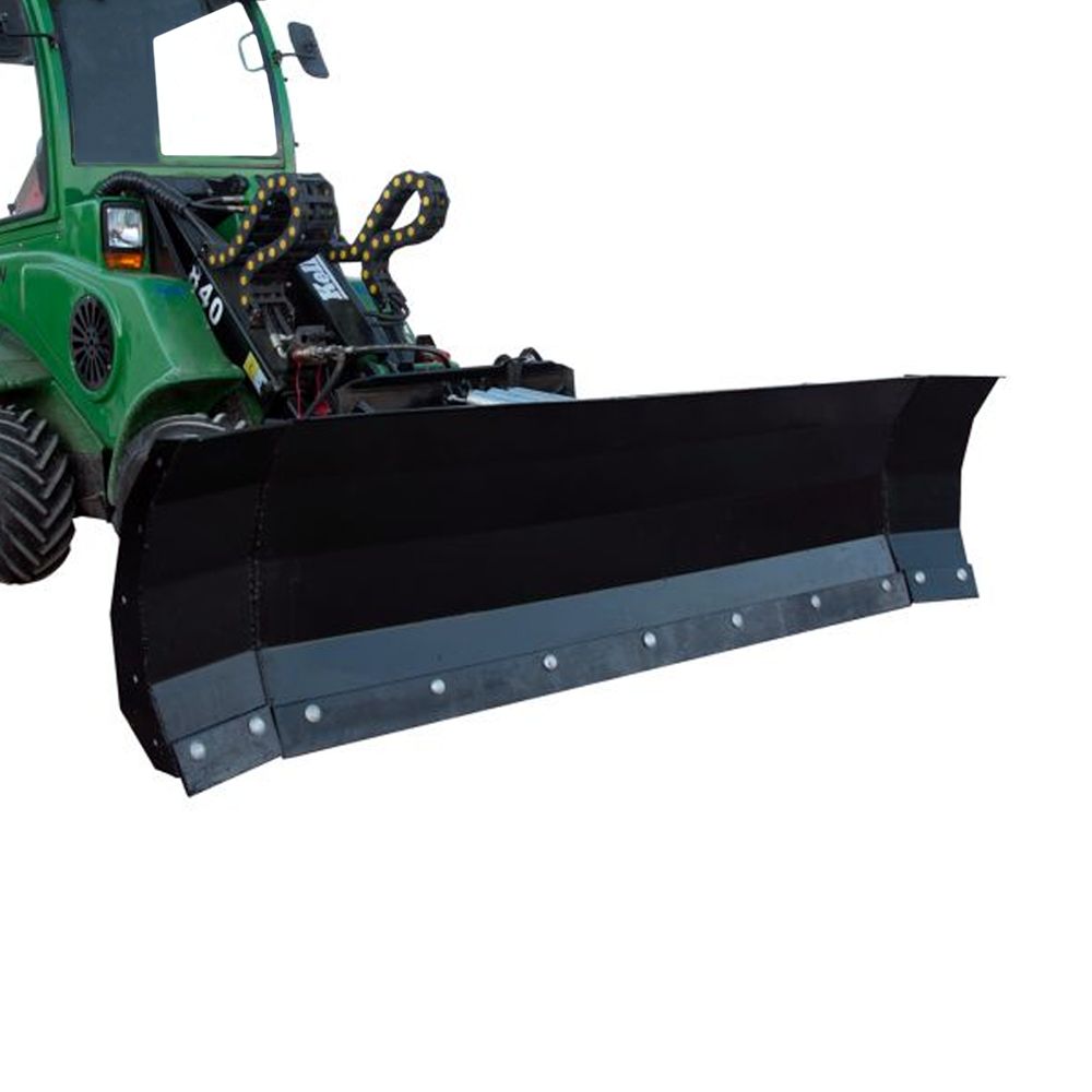 Diagonālā sniega lāpsta EURO (ar sānu spārniem). Darba platums 2500mm (2000mm+250mm+250mm). Augstums 550mm. Maināms nodiluma tērauds. Lāpsta aprīkota ar dubultiem spārniem, lai iegūtu lielāku sniega tīrīšanas tilpumu. Ar atsperes slodzes drošības mehānisma palīdzību asmens atliecas atpakaļ no ceļa, ja saduras ar lūku vāku vai citiem šķēršļiem. Hidrauliskās sānu nobīdes regulēšana +15/-30°. Aprīkota ar trieciena vārstu. Diagonālais vairogs ar 2 hidrauliskajām šļūtenēm ar ½ collu ātro savienojumu (ārējais vītne) un kronšteinu. Svars: 360kg.