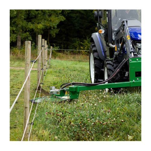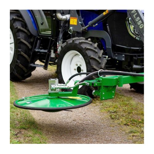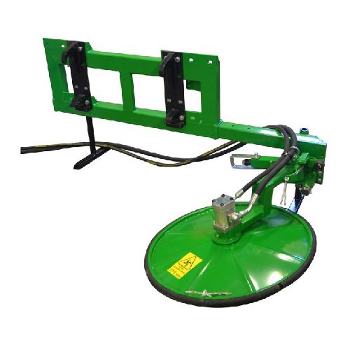 Diska veida apmalu pļāvējs – trimmeris. Darba platums 800mm, darba augstums 1000mm. Piemērots efektīvai zāles pļaušanai zem žogiem, blakus ēkām, ceļmalās, ap stabiem u.c. Stiprināms pie frontālā iekrāvēja priekšpusē ar EURO stiprinājumu. Aprīkots ar 1 rotoru. Maksimālais eļļas spiediens 190 bāri. Eļļas plūsma – min. 30l/min., max 45l/min. Hidrauliskā izeja: 3 hidrauliskās šļūtenes, spiediena/atgriešanas/noplūdes līnija. Hidrauliskā sānu nobīde. Aprīkots ar 2 jaudīgiem nažiem. Jaudīgs atsperes griešanas disks. Spēcīga aizsargplāksne apakšā, kas neļauj nažiem atsisties pret zemi. Dzinējs: Parker 23 m³ (ar iebūvētu spiediena ierobežotāju). Pļāvēja disks ir atsperots, lai, braucot pret stabiem, aizsragplāksne un disks atspertos atpakaļ. Atsperes funkcija sniedz iespēju griezt taisni zem žoga stieples un ap stabiem, neregulējot traktora piedziņas virzienu. Jānodrošina, lai traktoram būtu savienojums, lai noplūdes caurule no hidrauliskā motora varētu nonākt tieši uz traktora hidrauliskās eļļas tvertni. Savienojumam jābūt bez spiediena – (0 Bar). Noplūdes līnija iet tieši uz hidrauliskās tvertnes transportlīdzekli, šļūtene nav iekļauta. Pļāvējam nepieciešama traktora vienkāršas darbības (atgriešanas) un divkāršas darbības hidrauliskā izvade. Komplektā ietilpst: rāmis plāvēja uzstādīšanai, EURO stiprinājums, hidrauliskās šļūtenes ar 1/2 collu vīrišķo savienojumu un atbalsta kājas. Fotogrāfijās redzams pļāvējs ar Trima stiprinājumu, nevis EURO. Svars: 200kg.