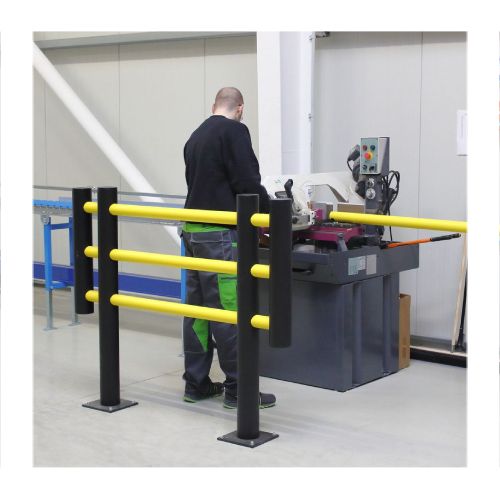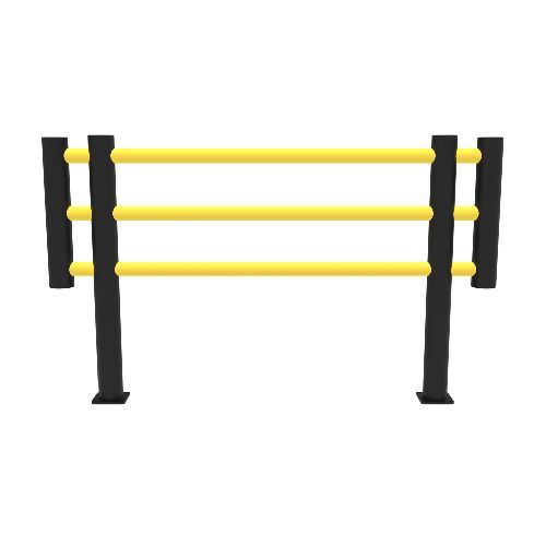 Elastīgā drošības barjera darba zonām (FOXTROT). Izmērs: garums 2004mm, augstums 1200mm, dziļums 150mm (bez pamatnes pēdas – 110mm), pamatne 150x150x10mm, caurules d=110mm. Stiprināšana pie pamatnes ar 8 skrūvēm (M10x70mm, iekļautas komplektā). Izgatavota no polietilēna. Krāsa: dzeltenmelna. Barjera izmantojama iekštelpās un ārā. Tiek piegādāta jau iepriekš samontēta. Iztur 2500J lielu spēku vai 2000kg transportlīdzekļa masas ekvivalentu, vai 5.7km/h transportlīdzekļa ekvivalento ātrumu. Ekvivalents trieciena leņķis 90°. Deformācija pie maksimālā spēka: 250mm. Temperatūras diapazons -40°C līdz +50°C. 100% pārstrādājama. Ķīmiskā izturība ar augstu ISO/TR 10358. Svars: 22kg.