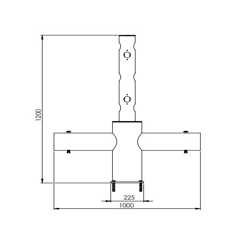 Elastīgo – veramo vārtu (Echo-JULIET) T-veida posms. Šis posms ir barjeru tipa ECHO un DELTA kombinācija. Izmēri: augstums 1200mm, platums 1000mm, dziļums 225mm (bez pamatnes plāksnes 200mm), pamatne 225x225x10mm. Stiprināšana ar 4 skrūvēm (M12x80mm; iekļautas komplektā). Izgatavots no polietilēna. Krāsa: dzeltenmelna. Piemērots gan iekštelpās, gan āra apstākļos temperatūrā no -40°C līdz 50°C. Vienkārša montāža. 100% pārstrādājams. Svars: 16.7kg.