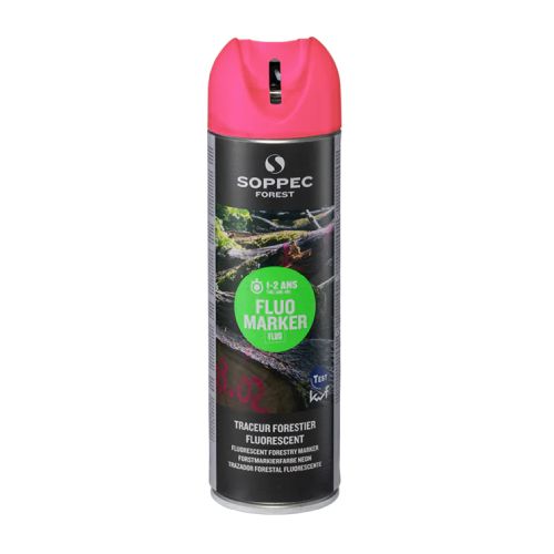 FLUO MARKER marķēšanas krāsa koku marķēšanai. Krāsa: rozā. Kastē 12 gab. Noturīga koka marķēšanas krāsa (12-24 mēneši). Īpašs smalks uzgalis paredzēts precīzām atzīmēm. Ļoti laba redzamība uz visām koku virsmām, pat no attāluma. Krāsu var izmantot arī zemās temperatūrās. Ātri žūstoša (~ 5min.). Izmantojama temperatūrā no -15 līdz + 50 grādiem pēc Celsija.