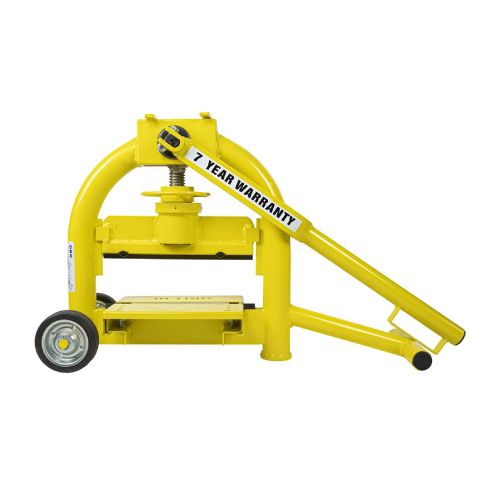 Giljotīna ķieģeļu griešanai no visām 4 pusēm un 1 atsperi. Minimālais griešanas augstums 10mm, maksimālais griešanas augstums 120mm. Maksimālais griešanas platums 330mm. Fiksēts rūdīts nazis. 4 griešanas malas. Pulverkrāsots dzeltens (RAL 1021). Griezēja izmēri: 950x280x600mm. Iepakojuma izmēri: 1220x1150x2200mm. Garantija 7 gadi (izņemot dilstošās daļas). Pieejamas arī rezerves daļas (asmeņi, ritenis, skrūves u.c.). Svars: 37kg.