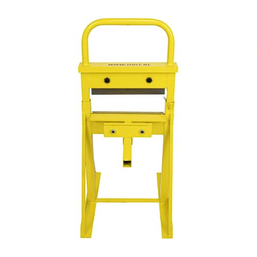 Giljotīna smilšu-kaļķu bloku vai ķieģeļu griešanai. Minimālais griešanas augstums 10mm, maksimālais griešanas augstums 150mm. Maksimālais griešanas platums 250mm. Fiksēts rūdīts nazis. Pulverkrāsots dzeltens (RAL 1021). Griezēja izmēri: 400x340x700mm. Iepakojuma izmēri: 800x400x350mm. Garantija 7 gadi (izņemot dilstošās daļas). Svars: 18kg.