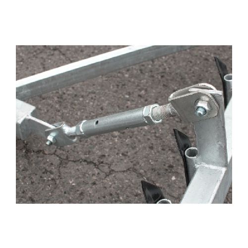 Grābeklis. Montējams pie kvadracikliem, visurgājējiem vai mazākiem traktoriem. Grābeklis paredzēts grants celiņiem, izjādes laukumiem un pagalmu teritorijām. Kopējais platums 1400mm. Kvadrātveida rāmis 60x30mm. Pilnībā cinkots rāmis. Zaru platums 22mm, zaru augstums 240mm, attālums starp atsevišķiem zariem 80mm (no centra līdz centram). Rotējami, rūdīti ecēšu zari. Sakabes spīle 50 mm lodveida sakabe, galos kronšteini. Grābeklis tiek piegādāts nesamontēts. Svars: 30.5kg.