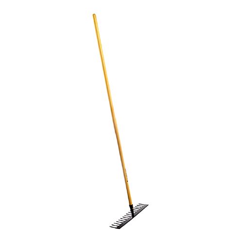 Cietmetāla grābeklis asfalta, smilts vai zemes līdzināšanai. Izmērs: 440x175mm. Kopējais garums ar kātu: 1720mm. 16 zari.